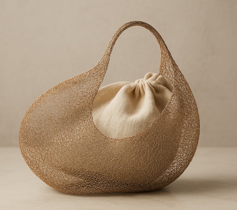 NATIVA. reinterprets Spanish bobbin lace through contemporary materials and processes, transforming a traditional technique into a structural language applied to product design. The project is especially linked to the universe of fashion, accessories, and jewelry, as it explores how a traditional craft technique can evolve into contemporary pieces such as bags, jewelry, or accessories.